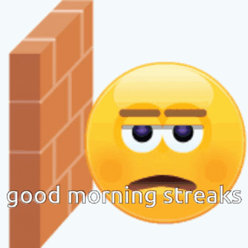 An angry Skype emoji hits a brick wall, then looks sad, representing 'good morning streaks' ending.