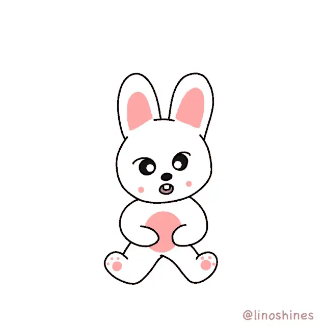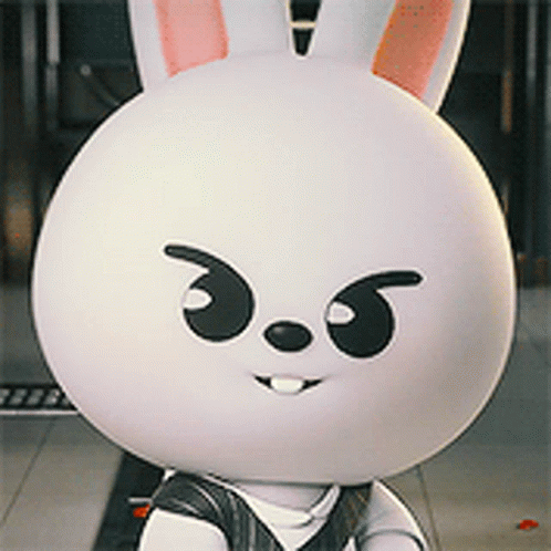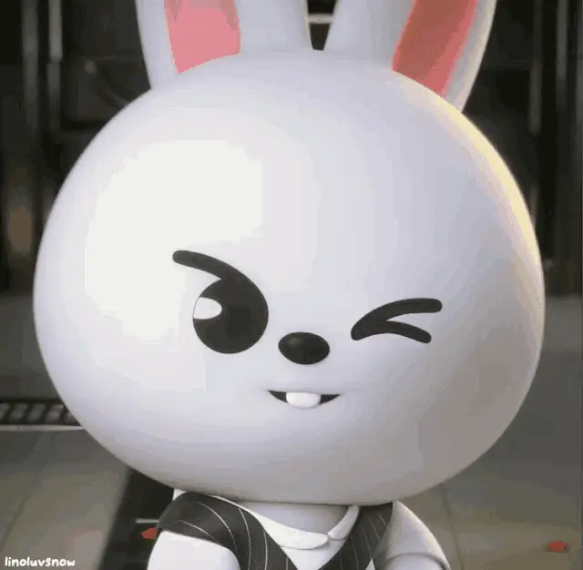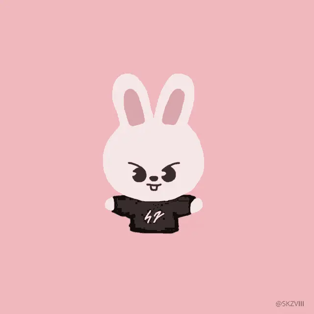 A cute Skzoo Leebit character with bunny ears and a mischievous smile, wearing a black and white outfit.