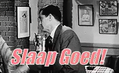 A man in a suit looks down as the Dutch phrase 'Slaap Goed!' appears, meaning 'Sleep Well!'.