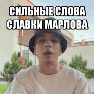 Slava Marlow delivers strong words, wearing a bucket hat and white t-shirt.