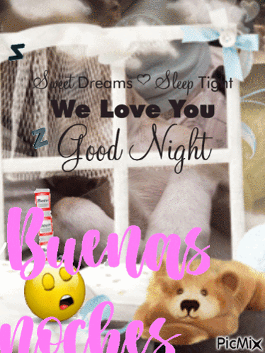 Lucas Dog's sweet dreams message with a teddy bear and 'Good Night' wishes in English and Spanish.