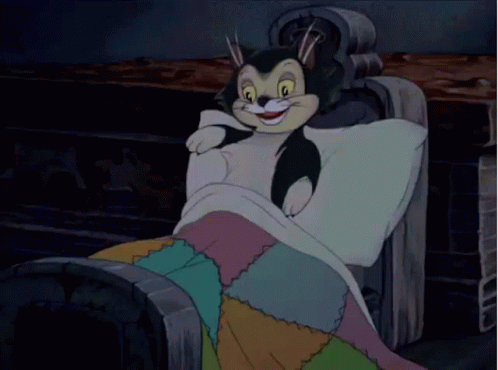 Bubzkji, the sleepy man, waking up in bed under a colorful patchwork blanket.