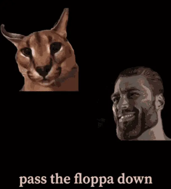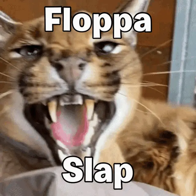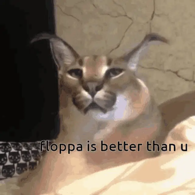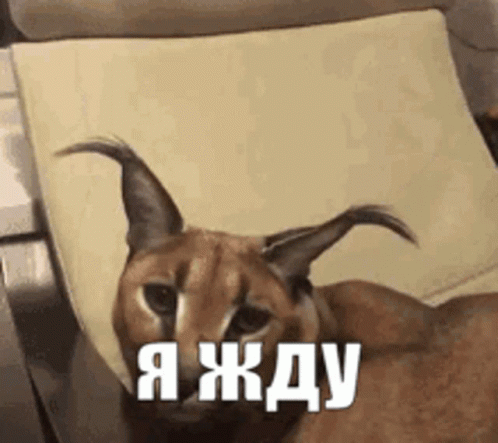 Floppa the caracal looks intently at the camera with twitching ears, captioned 'I am waiting'.