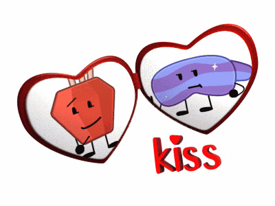 Animated heart locket featuring a Slumberscent Sleep Mask and a red object, closing to form a heart with kiss marks.