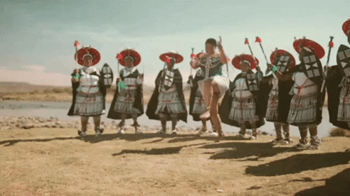 A woman dances energetically with people in traditional attire, celebrating Afro Soul Pop music by Simmy & Sun-El Musician.