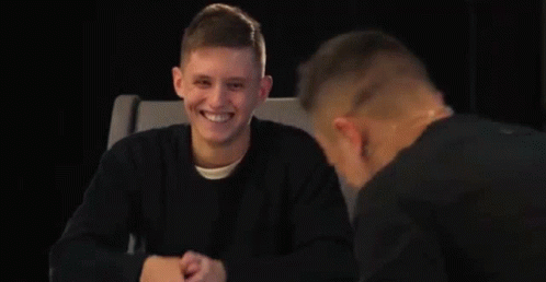 Ilya Sobolev laughing heartily while sitting in a chair during a conversation.
