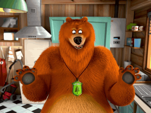 Grizzy the bear reacts with delight to a delicious smell, sticking out his tongue in anticipation.