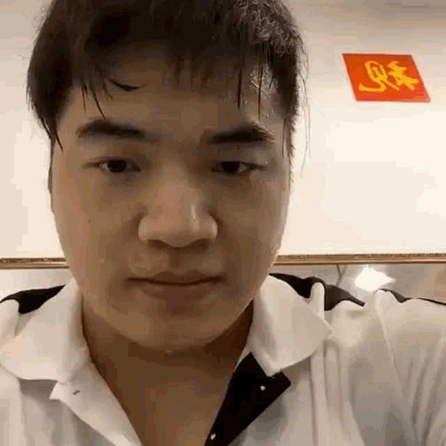 A man takes a selfie, making various facial expressions, smiling, and smirking, with sweat visible on his face.