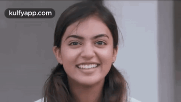 Nazriya Nazim's radiant smile lights up the screen, showcasing her cheerful and happy demeanor.