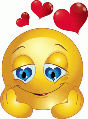 A yellow smiley face with big blue eyes and red hearts floating around, expressing love and affection.