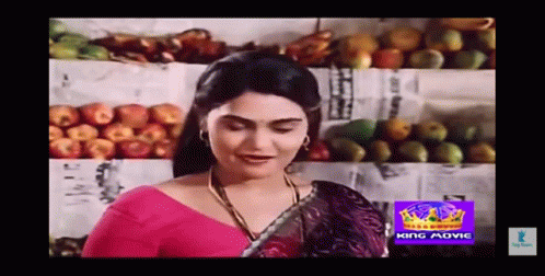 Smitha Silk smiles brightly while standing in front of a colorful fruit stand.