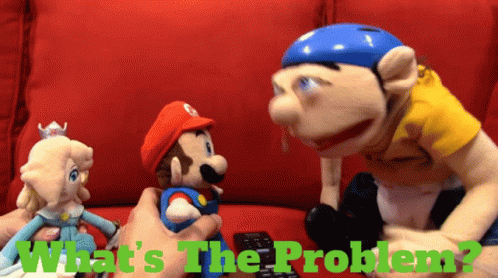 SML Jeffy puppet looks distressed while Mario and Rosalina puppets are held, with the text 'What's The Problem?'