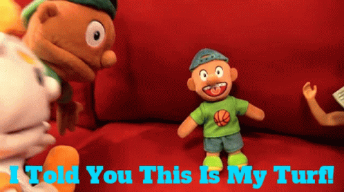 SML Joseph puppet declares 'I Told You This Is My Turf!' on a red couch with other puppets.