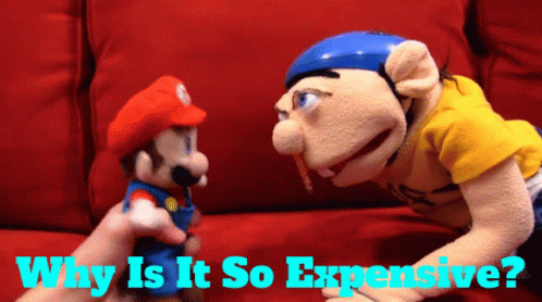 SML Mario and another puppet discuss high prices, with the text 'Why Is It So Expensive?' displayed.