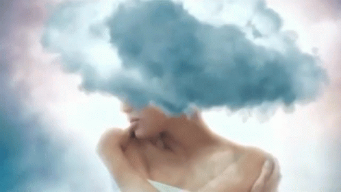 Ariana Grande featured with a smoke cloud effect replacing her head, arms crossed in an ethereal setting.