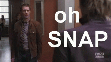 Man in brown jacket reacts with surprise as 'Oh Snap' text appears on screen, captured from a TV broadcast.