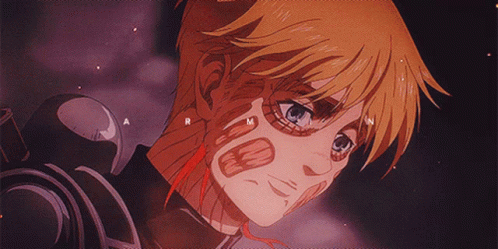 Armin Arlert from Attack on Titan with visible titan transformation marks on his face.