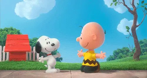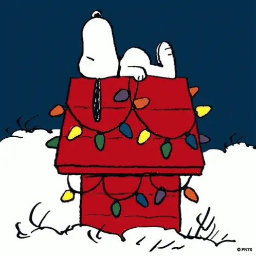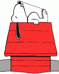 Snoopy the beagle is seen relaxing lazily on top of his iconic red doghouse.