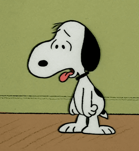 Snoopy, the beloved Peanuts character, appears thirsty and exhausted with his tongue hanging out.