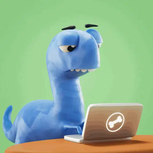 Snoopy, the beloved beagle from Peanuts, diligently typing on his classic red and blue typewriter.