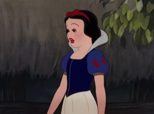 Snow White waves goodbye with a smile, saying 'Hasta Nunqui' in this animated clip.