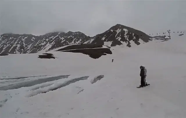 Om Nom, the beloved character, enjoys a thrilling snowboarding adventure down a snowy slope.