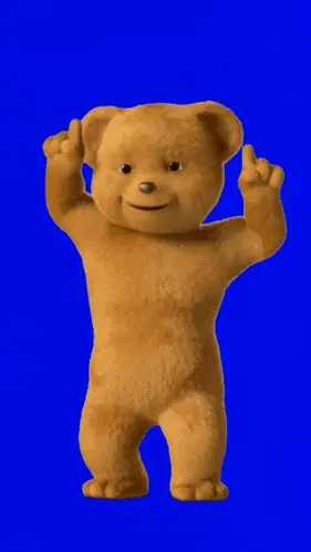 A Snuggle Bear teddy bear lies on a blue bed with the text 'YA YAY YAY JADES COMING'.