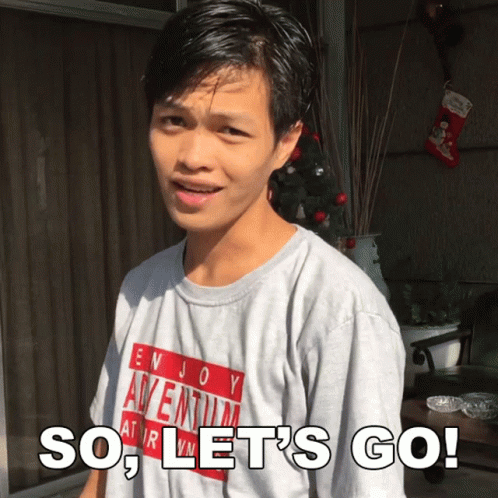 Jhon Mark Perez enthusiastically invites viewers to join him, wearing a grey 'Enjoy Avenue' shirt.