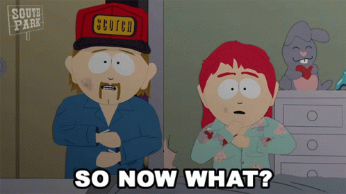 Stuart and Mrs. McCormick from South Park ask 'So Now What?' in a confused moment.
