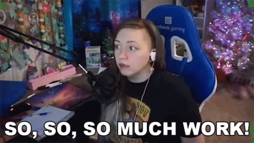 Panser expresses her workload, exclaiming 'So, so, so much work!' while at her gaming setup.