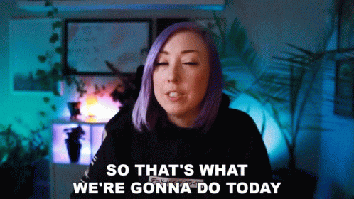 Ashnichrist, a woman with purple hair, states, 'So that's what we're gonna do today.'