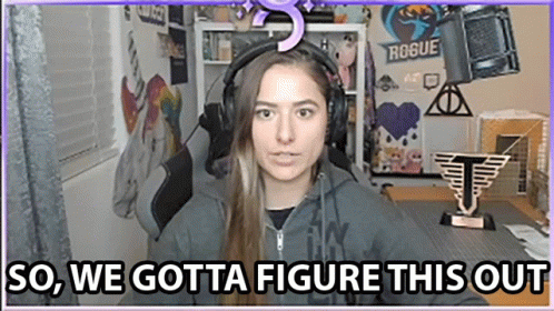 Glitterxplosion, a streamer, states 'So, we gotta figure this out' while wearing headphones.