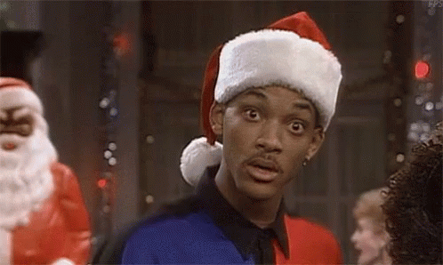 Will Smith, as Fresh Prince, looks surprised in a Santa hat during a Christmas scene.