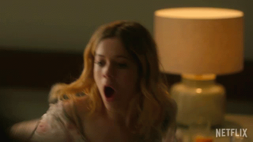 Cayetana Grajera (Georgina AmorĂ³s) from Elite looks startled, surprised, and shocked, with the Netflix logo visible.