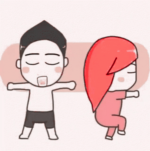 A cute cartoon couple, a man and a red-haired woman, share a sweet cuddle.