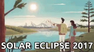 Animated view of the 2017 solar eclipse, with people watching the celestial event.