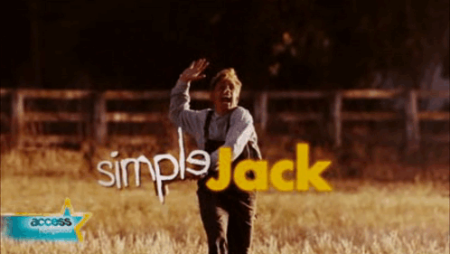 Ben Stiller as Simple Jack from 'Tropic Thunder' in a field, holding a hammer.