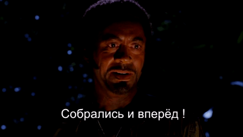 A man with a beard, from Tropic Thunder, speaks Russian lines: 'Get ready and go! Some may not return.'