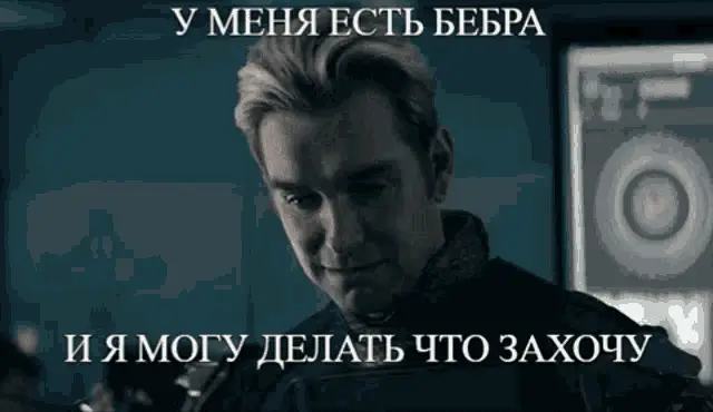 Soldier Boy from The Boys holds a smoking device in a dusty room, with the Russian text 'ПОХУЙ' (I don't care) overlaid.