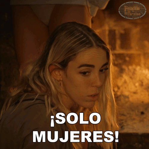 Dana Ponce makes a face while the text '¡Solo Mujeres!' appears, from 'Pesadilla en el Paraíso'.
