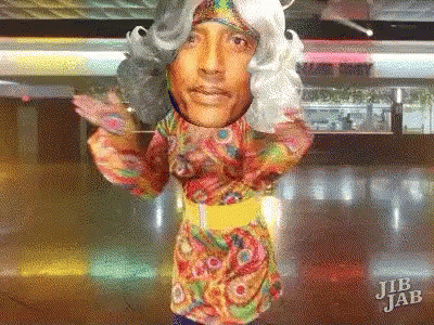 Muse Bihi Abdi dancing in a colorful JibJab animation, set in a disco-like environment.