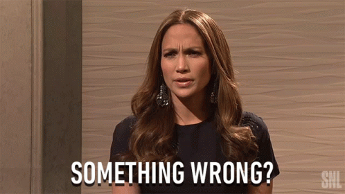 Jennifer Lopez looking concerned and asking 'Something Wrong?' on Saturday Night Live.