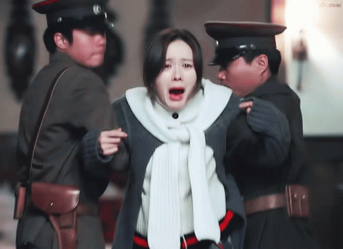 Son Ye Jin, as her character in Crash Landing On You, is seen crying while being held by two men in military uniforms.