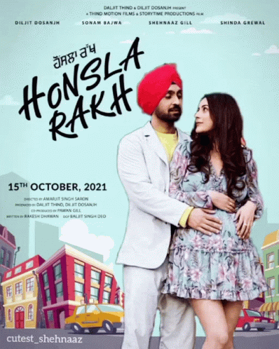 Promotional poster for the Punjabi movie Honsla Rakh, featuring Sonam Bajwa, Diljit Dosanjh, and Shehnaaz Gill.