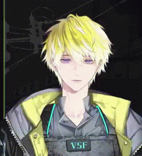 Nijisanji EN's Sonny Brisko from Noctyx smiles, showcasing his distinctive yellow hair and VSF jacket.