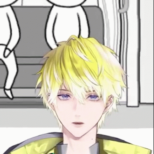 VTuber Sonny Brisko with bright yellow hair nods his head rhythmically, eyes opening and closing.