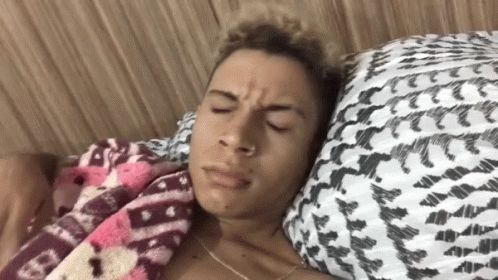 Mathues Yurley wakes up feeling sleepy and tired, covering his face in bed.