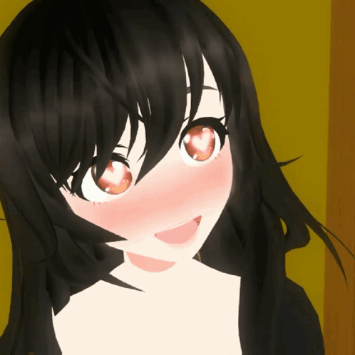 Yadi, also known as Yadidoll or Zaotome, a 3D anime-style VTuber with black hair and red eyes, blushes and smiles.