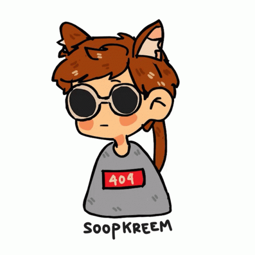 Soopkreem's art of Georgenotfound as a catboy, wearing sunglasses and a '404' shirt.
