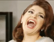 Soraya Montenegro from Maria La Del Barrio laughing hysterically with her mouth wide open.